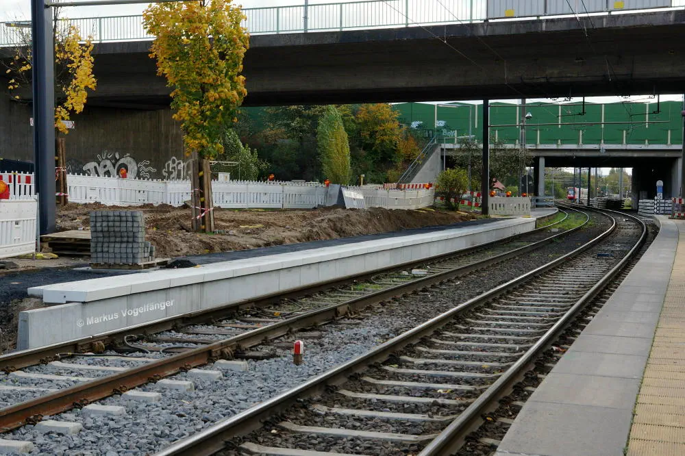 Die neuen Schwellen zwischen den Haltestellen Fordwerke Mitte und Fordwerke Nord.