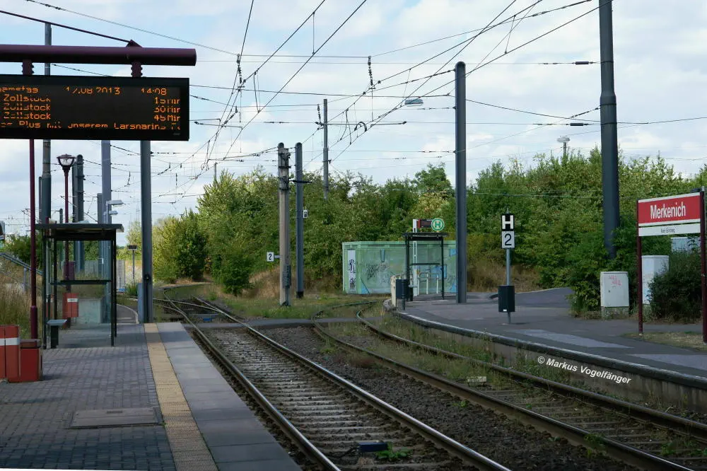 Die Ankunftshaltestelle Merkenich am 20.10.2013.